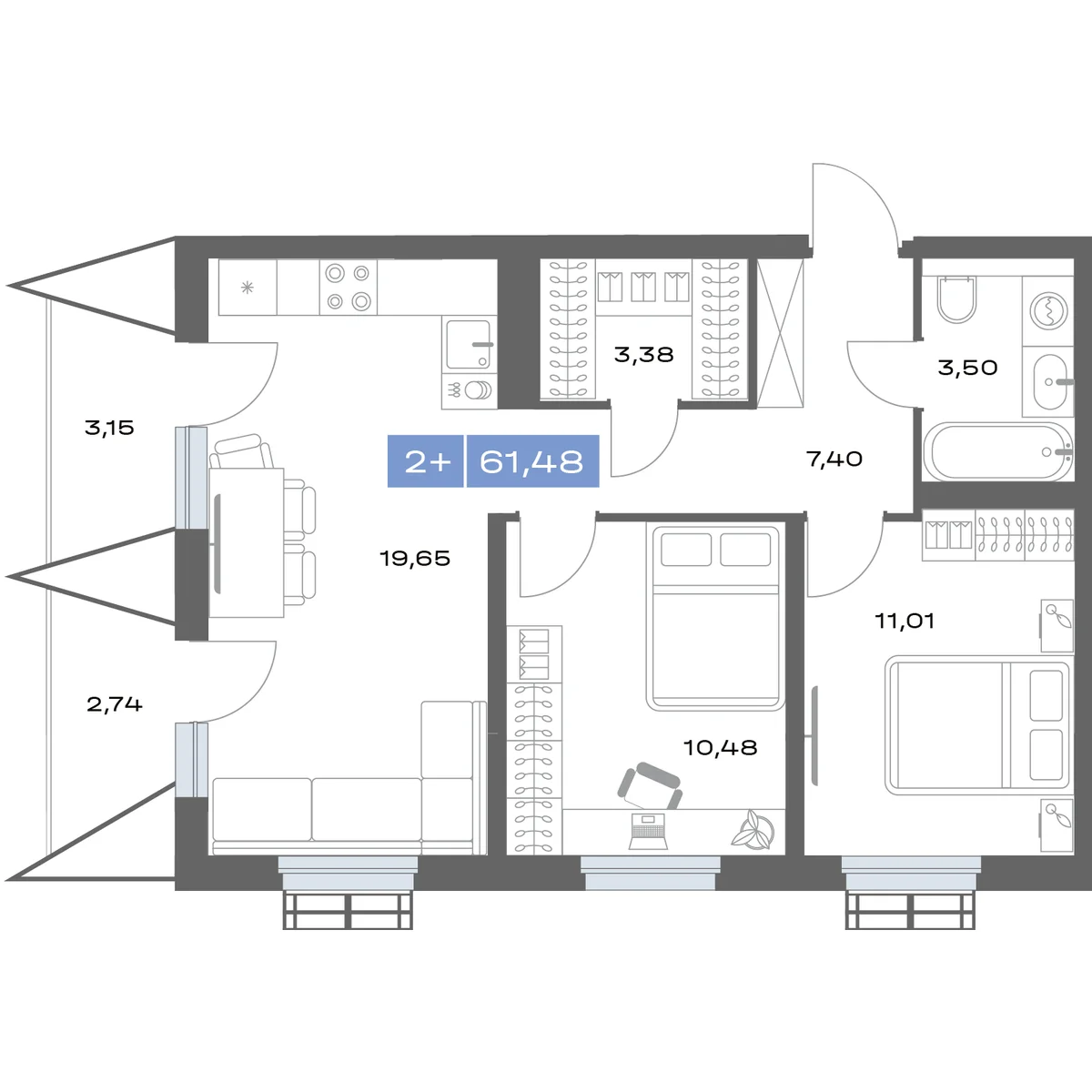 2-комнатная 61.88 м2