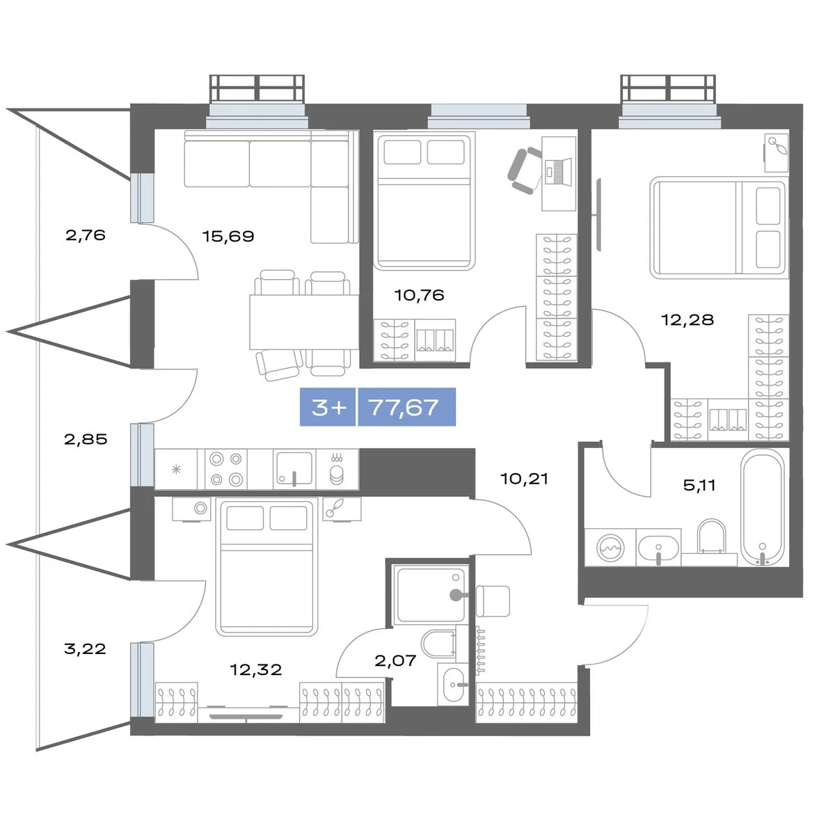 3-комнатная 77.67 м²